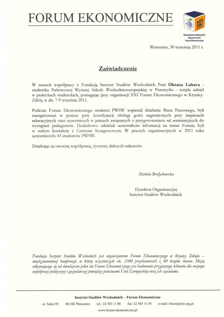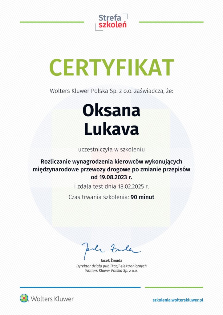 Oksana Lukava to doświadczony menedżer z wykształceniem w zakresie ekonomii, biznesu i marketingu oraz magister stosunków międzynarodowych. Od 2015 roku związana jest z obszarem kadr i płac, w szczególności z legalizacją cudzoziemców oraz prowadzeniem dokumentacji pracowniczej.